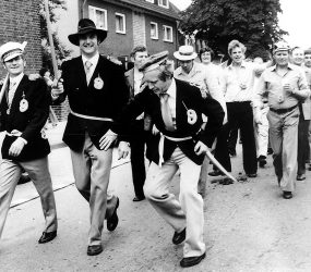 Die „Mesterstunne inne Klumpenkammer“ ersetzte mit großem Erfolg am Vormittag im Festzelt die vorher abgehaltenen „Gemeinderatssitzungen“. Unvergessen sind die plattdeutschen Dönkes, vorgetragen von Hans Büning, Jans Heisterkamp, Jans Hermes, Fritz Pels, Jans Rottmann, Jupp Schäpermeier, Jans Schnieder, Heinrich Steinberg und Bernd Uhlenbrock. Ein Stück gutes, altes Dorfleben lebte wieder auf.