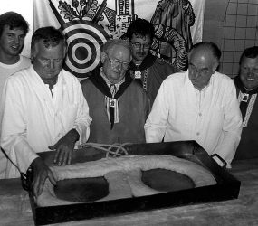 Was war beim Brezelfest kurz vor Schluss des Brezelwerfens los? Die beiden Königsanwärter Hans Schweitzer und Peter Dreckmann (Schmutzmann) waren „verschwunden“. Hatten sie Angst vor der eigenen Courage? Das Werfen musste einige Zeit unterbrochen und die Kandidaten gesucht werden. Die Blasmusik spielte unermüdlich. Besorgte Blicke bei den Verantwortlichen. Des Rätsels Lösung: Hans und Peter hatten gemeinsam noch eine Stärkung (feste Nahrung!) eingenommen, um den anschließenden fairen Wettkampf und die folgenden Turbulenzen besser überstehen zu können.