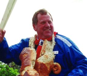 Schließlich war Hans Schweitzer als Hans IV. strahlender Triumphator in einem fairen Wettbewerb. Wie er mit dem Reststück des Brezels im Festzelt die Gesänge „Wir singen Hans 99″ über sich ergehen ließ! Strahlendes Glück zusammen mit seiner Königin Dorothee I. (Brauckmann).