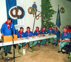 Die zweite öffentliche Versammlung im Ortsteil Hardinghausen, auf dem Bauernhof von Josef Rottmann, Gahlener Straße , fand erstmals in einer „Festscheune“ mit rd. 400 Brezelbrüdern statt. Die Organisatoren der Veranstaltung hatten den Veranstaltungsraum stimmungsvoll hergerichtet. Mittelpunkt der großen Scheune war der „Ferkspott“, der mit heißem Wasser und darin schwimmenden Wacholderflaschen gefüllt war. Major Ulli Voßelmann sah sich zwischenzeitlich veranlasst, die Brezelbrüder zu einem Strafausmarsch antreten zu lassen, um die Gemüter zu „beruhigen“.